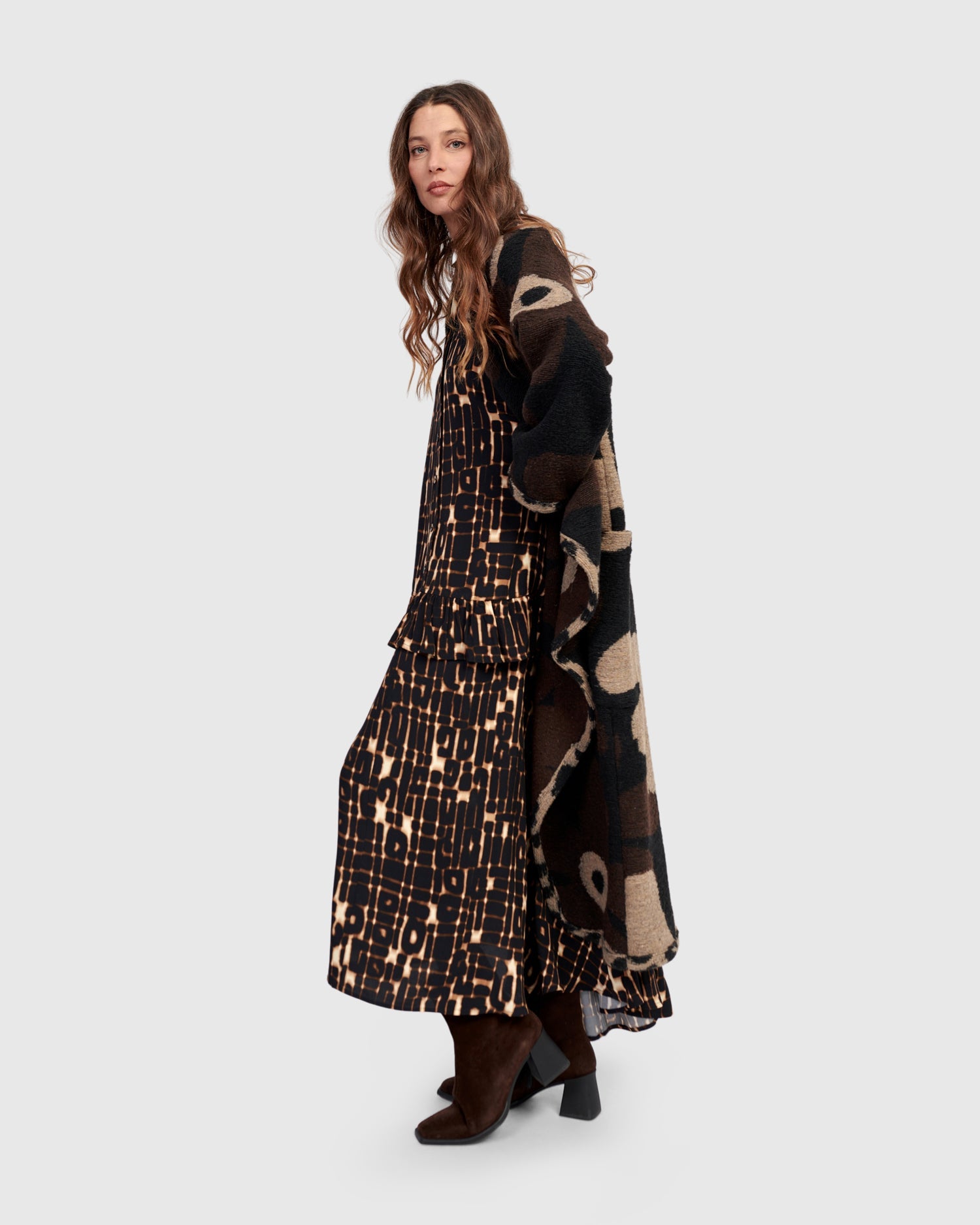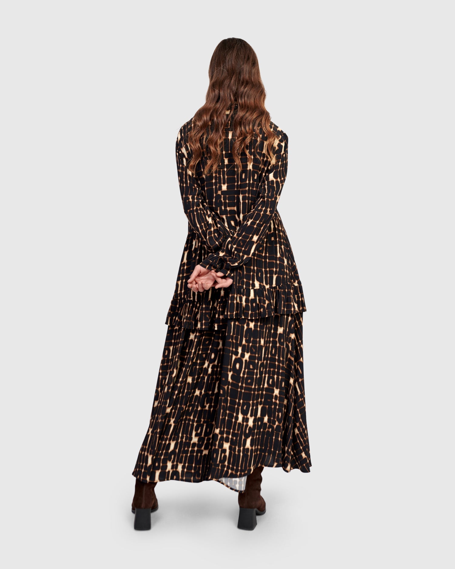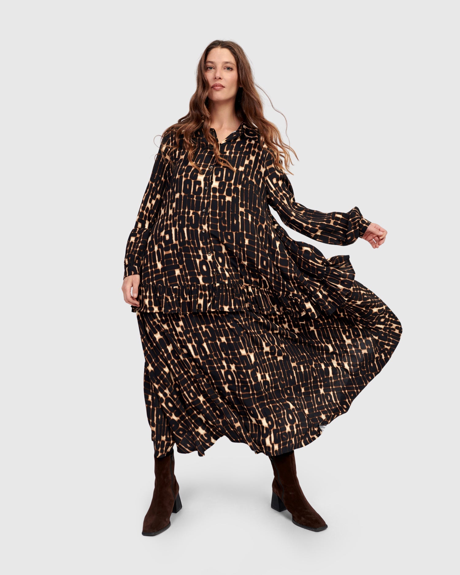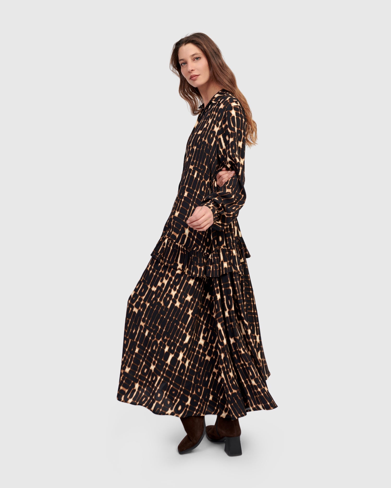 Draping beautifully in a crepe-textured woven, the Tessera Maxi Dress merges tailored polish with easy movement. Its drop waist and flowing A-line silhouette create subtle structure, while set-in sleeves and a classic collar elevate the look. A partial placket and side pockets add functional appeal. Wear it layered or solo - this maxi silhouette transitions seamlessly from season to season.