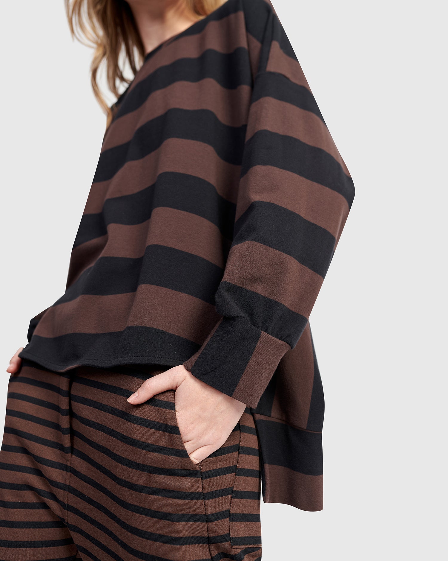 - Drop shoulder loose sleeves with cuff
