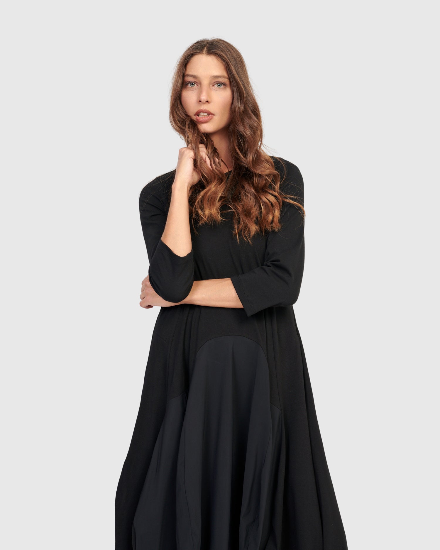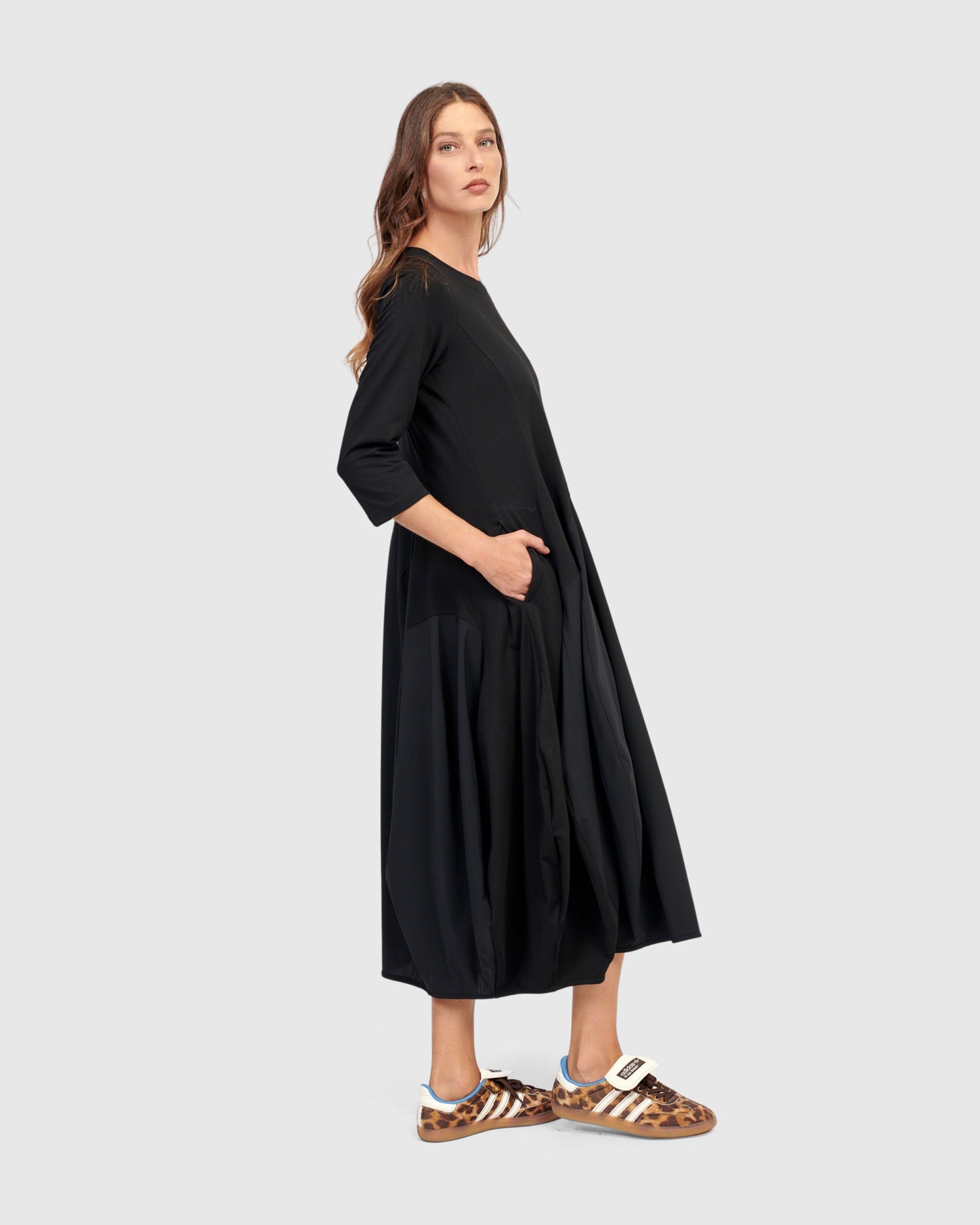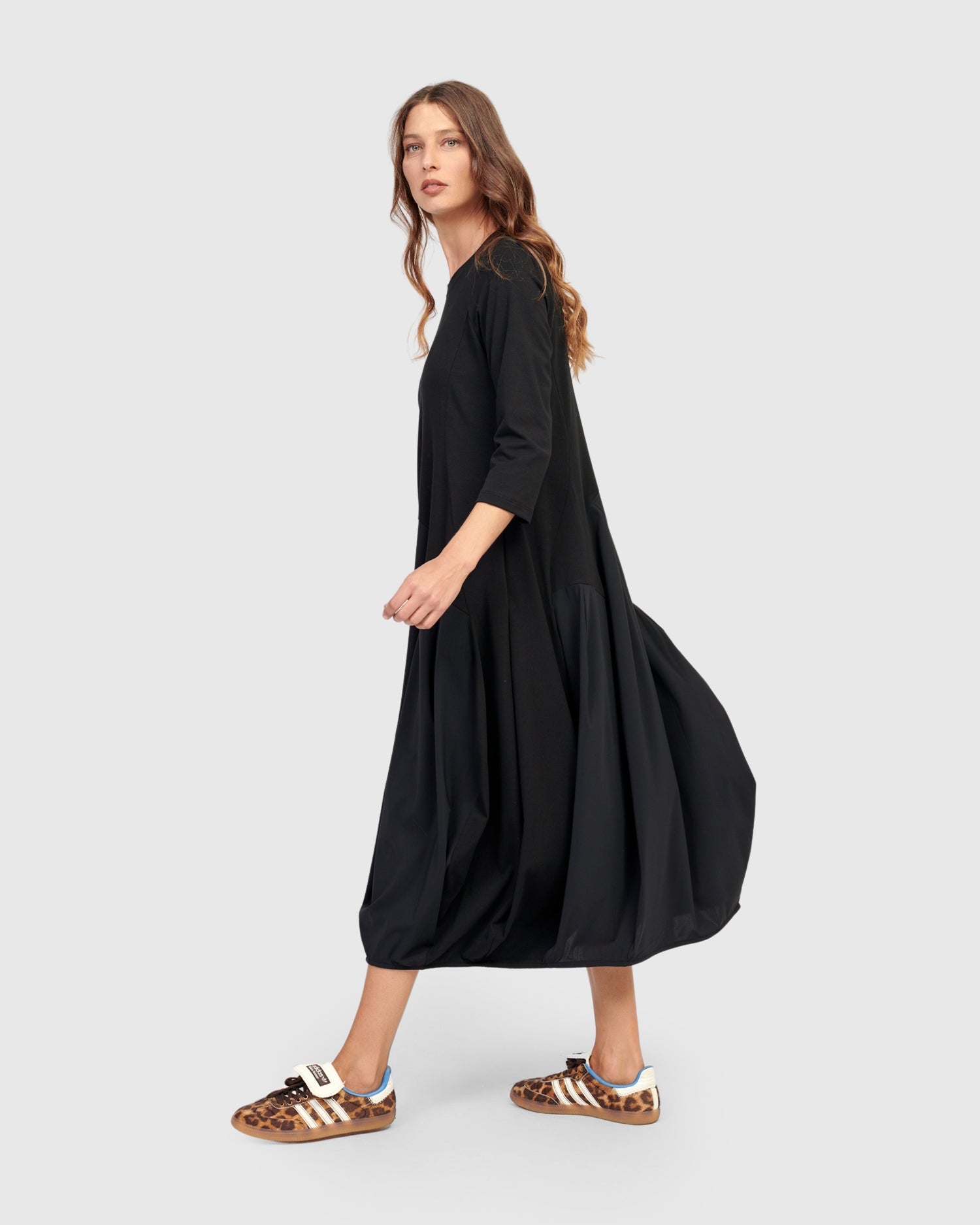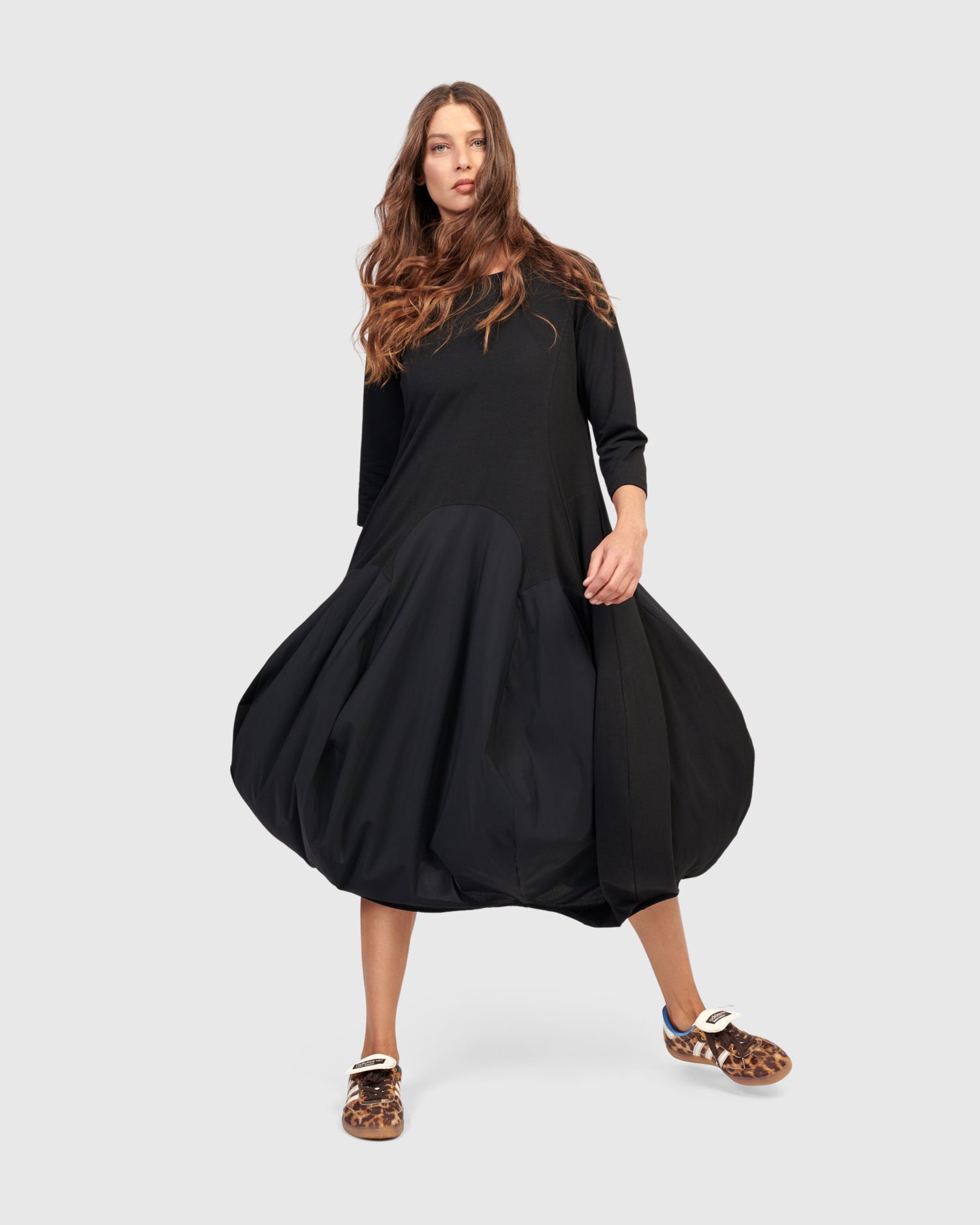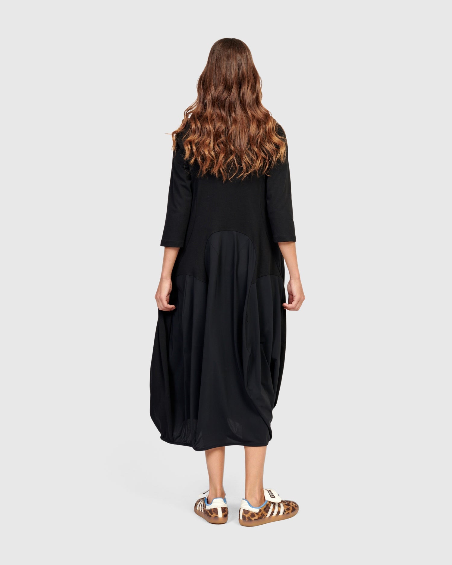 For a more casual fit, the Crew Cocoon is a perfect variation of our signature Cocoon Dress. Made in a soft jersey knit, this pullover midi dress has a crew neck, short sleeves, and midi length. It skims the bust, then falls into draped cocoon skirting with made-to-flatter seaming in panels of TECHNO fabric.
