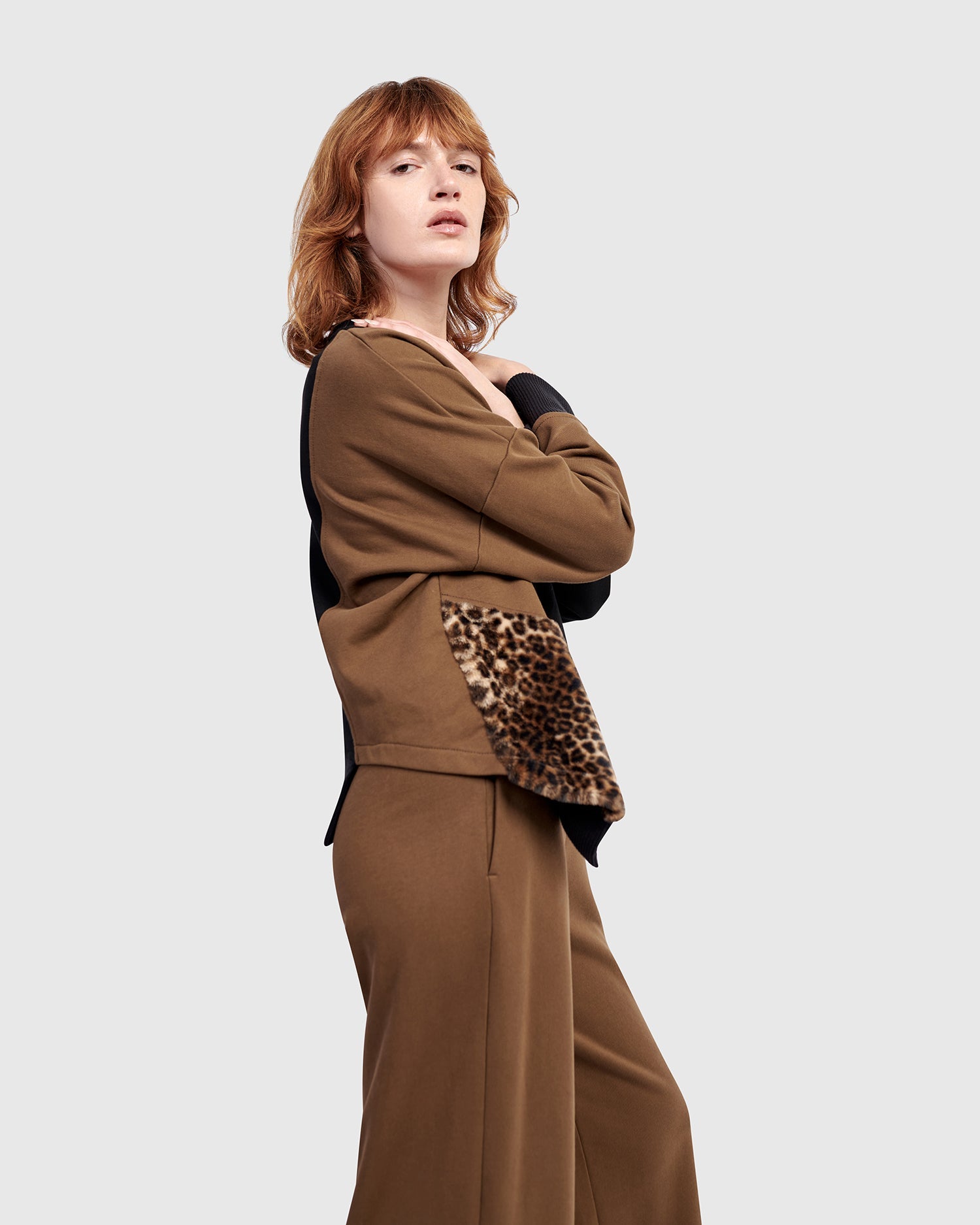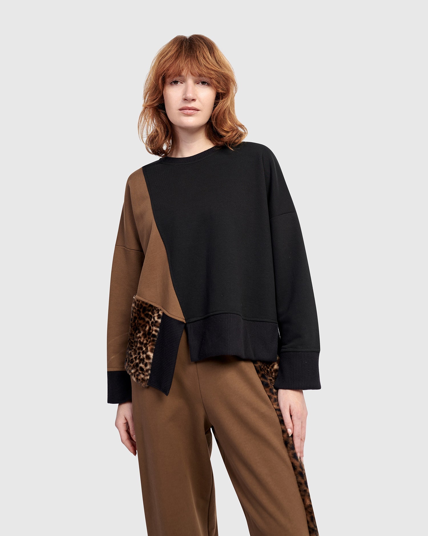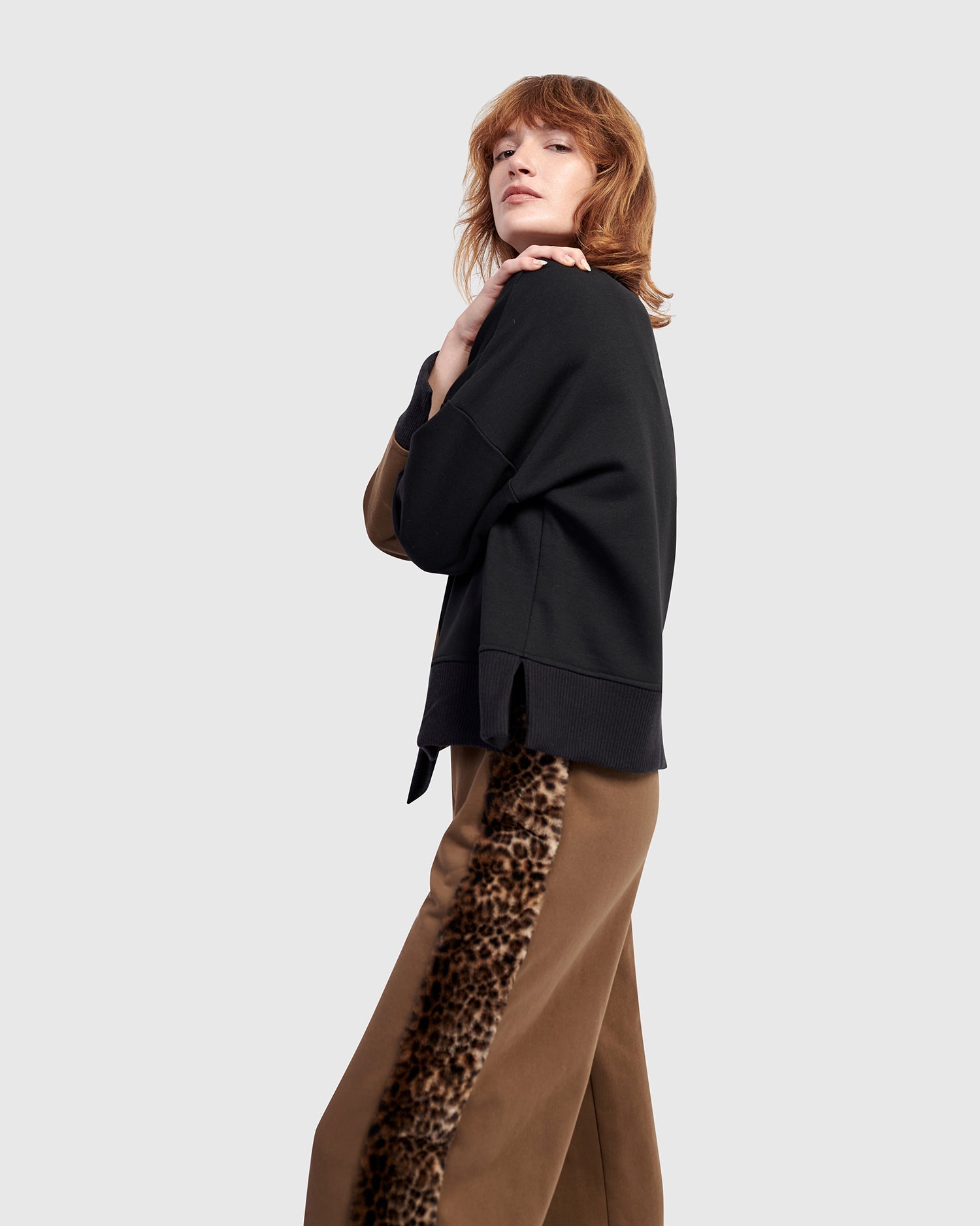 Oversized and cozy, this boxy crewneck is cut from midweight French terry with plush faux fur accents. Drop shoulders and an asymmetrical hem add relaxed structure, making it an effortless layer for� Urban Collection.
