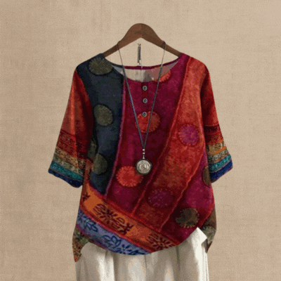 - Stampa vivace in stile patchwork - Fatti notare con motivi unici e accattivanti che rendono ogni blusa un'opera d'arte indossabile.